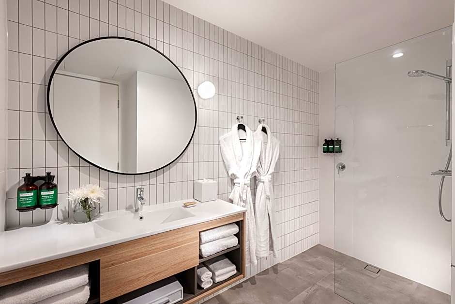 Experience contemporary luxury in the Junior Suite, featuring a walk-in wardrobe and an impressive bathroom with rain shower. Located between floors 11 and 20, the suites offer stunning views of the city of Adelaide.